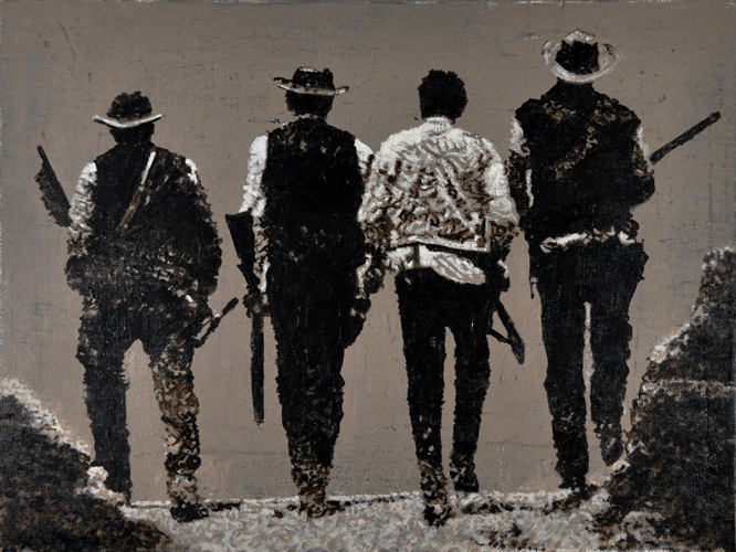 DISGUISED AS SOLDIERS #2 2017 acrylic on canvas, 12 x 22 inches
